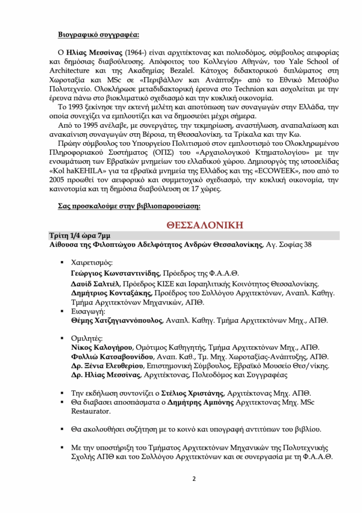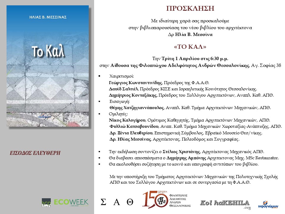 | την Τρίτη 1 Απριλίου στις 18:30 στην αίθουσα της Φιλόπτωχου Αδελφότητας Ανδρών ΘεσσαλονίκηςΑγίας Σοφίας 38 |