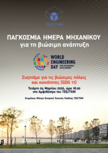 Περισσότερα στη δημοσίευση: Το ΤΕΕ/ΤΚΜ τιμά την Παγκόσμια Ημέρα Μηχανικού